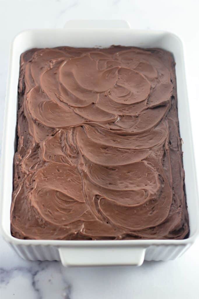 - Cool the cake completely to room temperature then frost with the frosting of your choice.