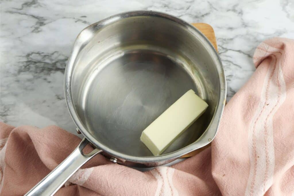 Step 1: Start by heating up your butter in a saucepan on the stovetop on medium heat.