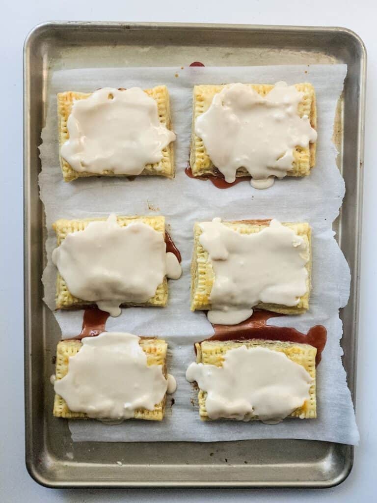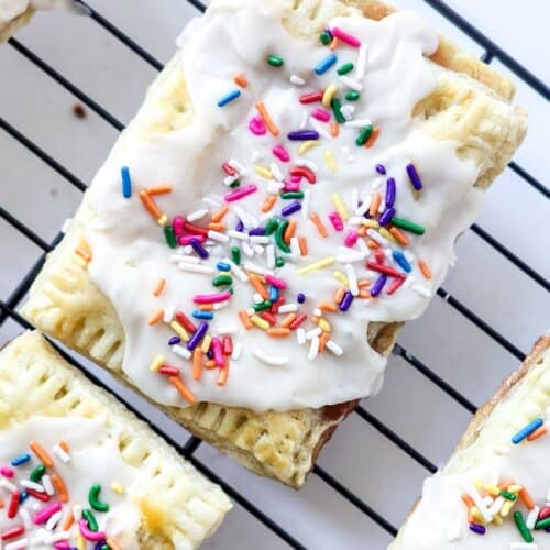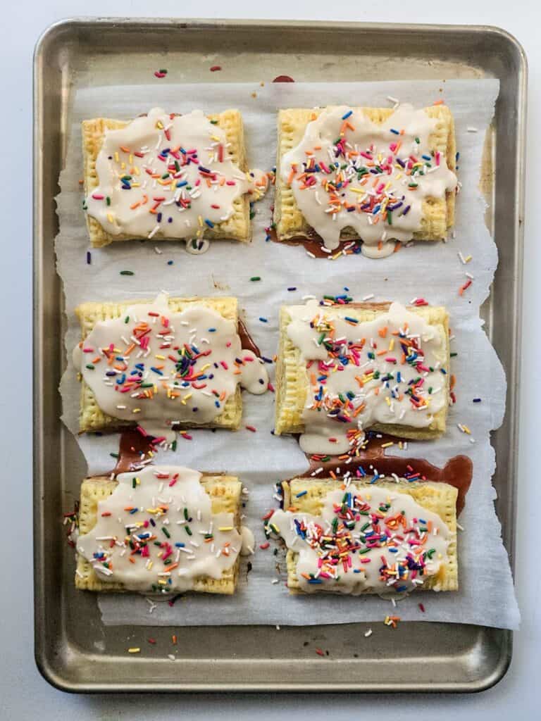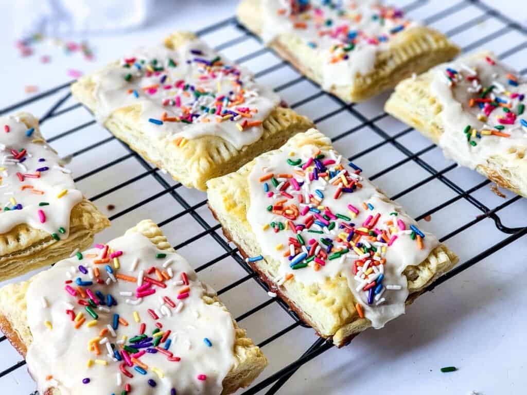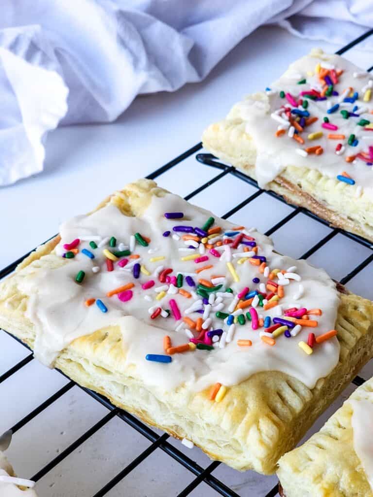 - Pour and spread the frosting over each pastry just like a strawberry poptart and sprinkle with colorful sprinkles on top.