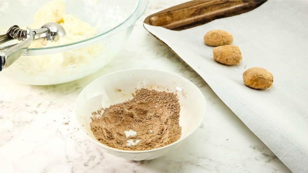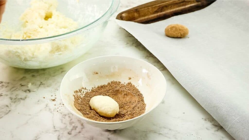 Step 5: Use your hands to form teaspoon size balls or potato-shaped ovals and then roll the balls in the cinnamon mixture.