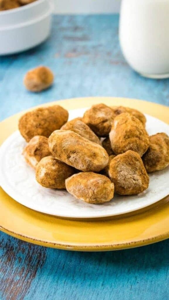 Some people like to add peanut butter to this recipe, and coat them in cocoa powder instead of cinnamon.