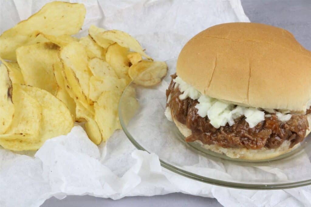 Step 5: Mix in your favorite BBQ sauce into the meat and then serve on top of a bun.