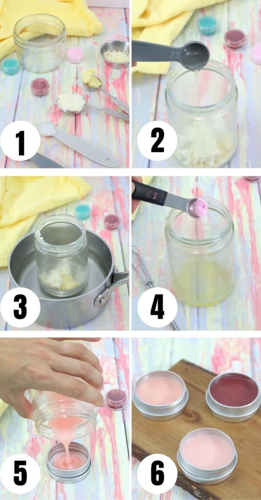STEP 5-6: Pour into lip balm containers and let sit overnight to harden.