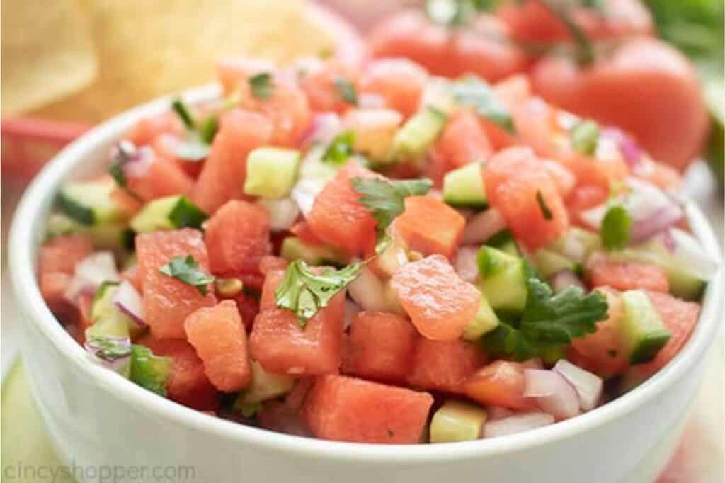 Watermelon Salsa made with fresh fruits and veggies with the perfect amount of heat!