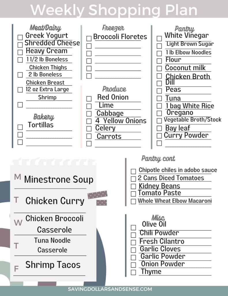 Grab your free printable shopping list and take it with you to the store to easily grab everything youโll need to make the following meals this week.